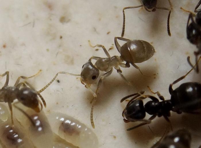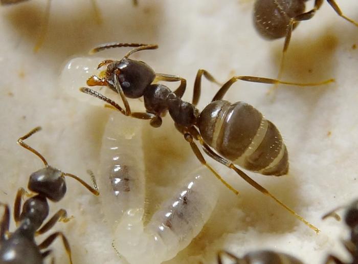 Получил сегодня к своему фотоаппарату кольца. Тестирую. На фото рабочий муравей и окукливающиеся личинки.
