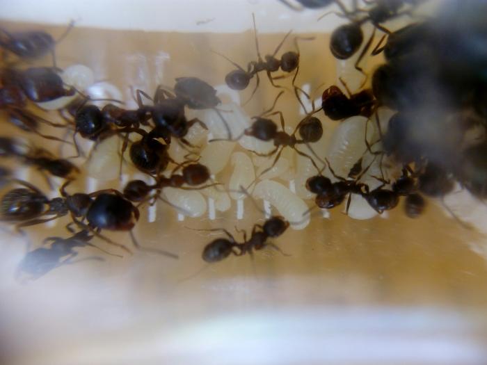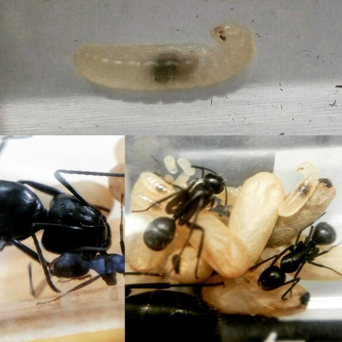 Конец второго месяца. У париусов появилась возможность выпасать тлю, чем они и воспользовались. Также к этому моменту появились первые личинки, предположительно, второго поколения.