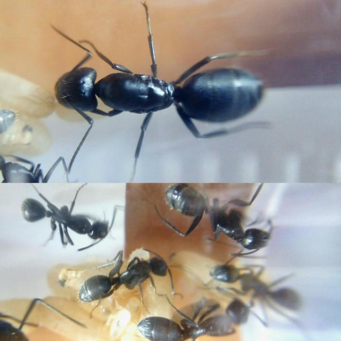 К нынешнему времени - запас воды уже полтора месяца как исчерпан, но в "выводковых" пробирках муравьи самостоятельно поддерживают влажность за счёт поилки на арене. Влажность поддерживают высокую, в закрытой ватой части пробирки до сих пор держится конденсат.