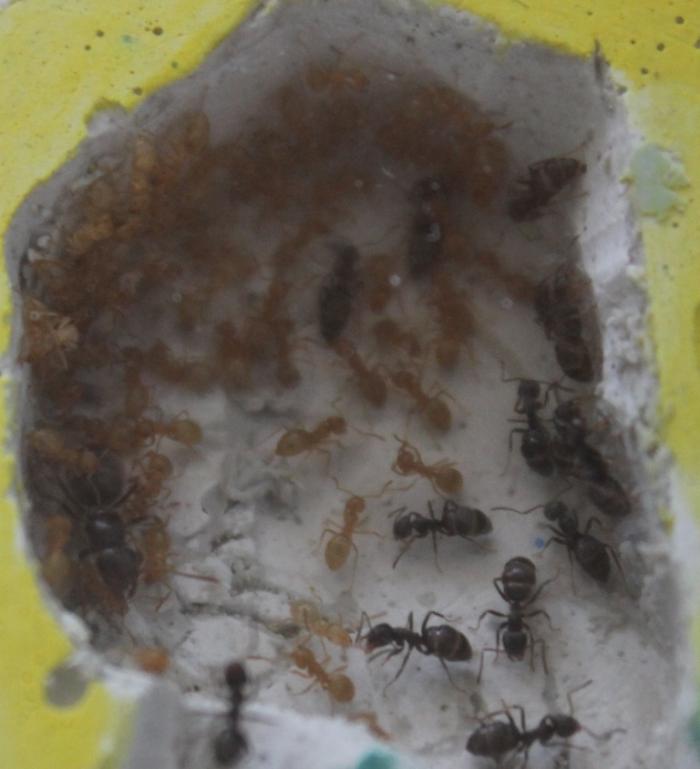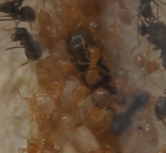 Первые рабочие появились около недели назад. Желтый цвет рабочих тоже смутил. Но для умбратусихи она чересчур темная, если сравнивать с моей. Да и после подкидывания рабов вели они себя по разному.