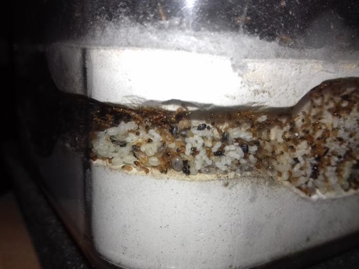 моя колония живёт в формикарии с июля прошлого года, и до этого два месяца обитала в коробочке с салфетками на острове.