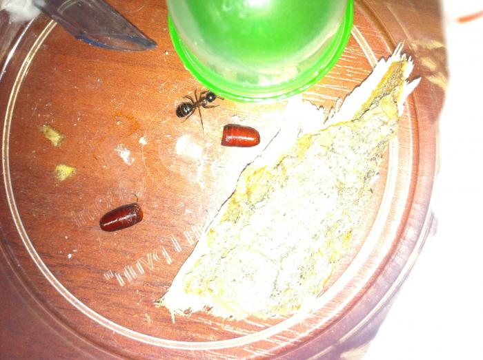 Матка постоянно кормила их, она щекотала личинки усиками, и те выгибались, принимая пищу. За неделю все 15 окуклились. Матка сложила их в одну кучу и отложила ещё 5 яиц.