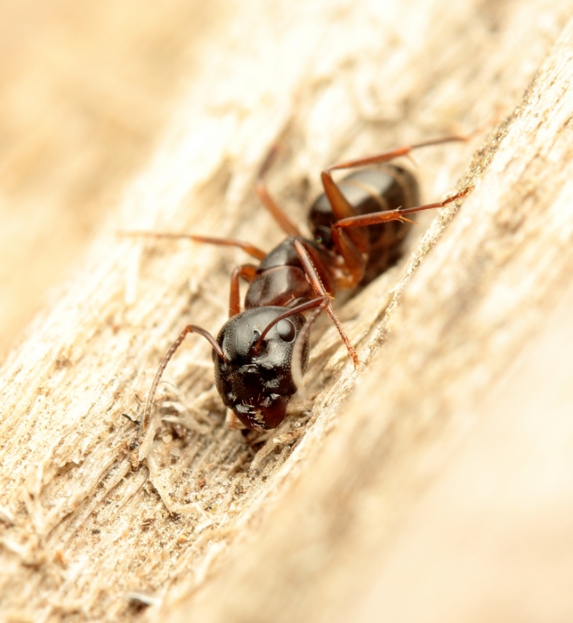 4. По размеру тела примерно как формика руфа. Лапки рыжевато-коричневые, тело темное, черно-коричневое.