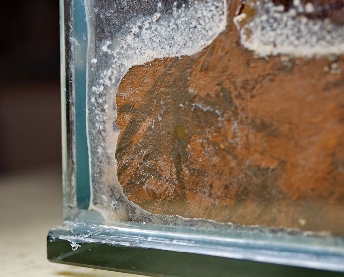 В блоге ранее я писал, что изначально при заселении барбарусов в новый формикарий им было предоставлено 2 жилые зоны - верх куба и сторона, выходящая на арену. С ограничением они справились за 2 недели и "глазом не моргнув". То, что муравьи копают гипс и делают нужные по их мнению переходы между камер я видел, точно также как и то, что они копают вглубь к дну жилого модуля. Как и в других формикариях в нижней части сделаны дренажные каналы и колодец в одном из углов для введения воды. Вот туда то и прорвались настырные барбарусы.