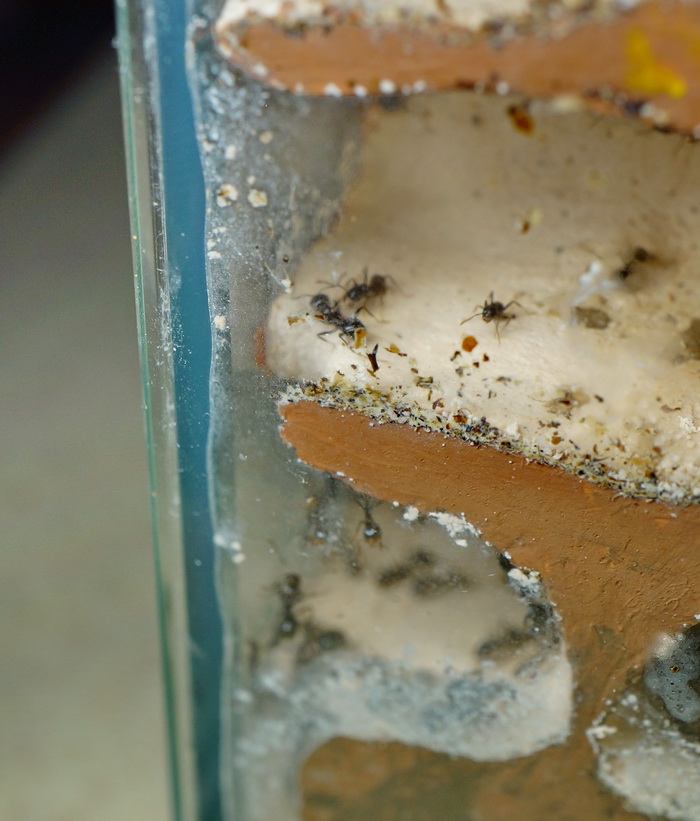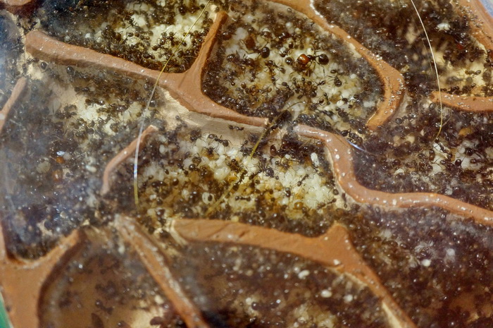 Колония заселена во временный формикарий с миниареной и пробиркой, завтра - после завтра начну делать горизонтальны гипсовый. То, что у мессоров должны быть сухие и влажные камеры знаю, но тем не менее вопрос: