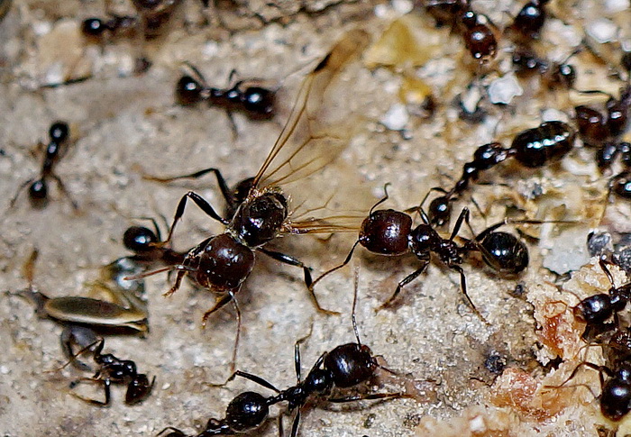 Потом обнаружил на свалке крылья (см. фото). Первая крылатая особь была изгнала из гнезда? По крайней мере надежда на это, но "главную" матку пока не нашел среди уже огромного количества рабочих.