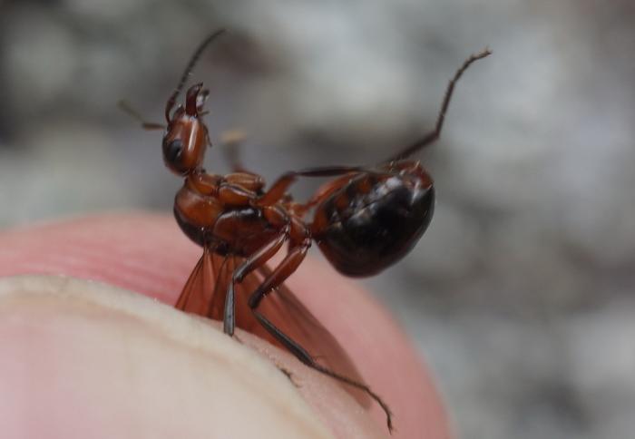 Фотографируя лазиусов, вдруг заметил, бодро так ползущую вверх по березе матку с крыльями. Я не знаю кто это. Подскажите? После фотосессии отпустил на ту же березу. Так же прытко она поползла выше и порхнула. Далее проследить не удалось.