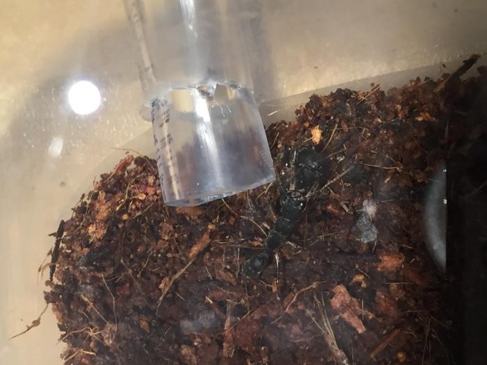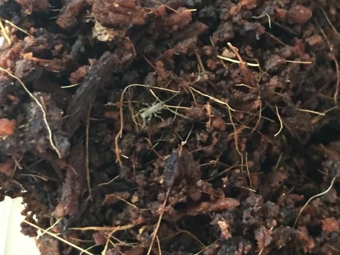 Хотел сделать эту запись позавчера, но пишу только сегодня. Уже на протяжении 2 недель, я мог стоять у полки с венаторами и вглядываться, не появились ли личинки. И вот 24 июня стукнул ровно месяц с момента откладки яиц, покормив мои семьи, я как обычно начал смотреть на состояние расплода, первая колония- все как и обычно( видимо они подъедают яйца), вторая колония-падлы, съели всю кладку яиц. И очередь подходит к третьей колонии- смотрю и неверю своим глазам! Личинка! А может и не одна, но нашел только одну. После чего меня не было дома 2 дня. Приехав я увидел что личинок уже не мало и они быстро растут. Кстати у псевдонеопонер которые живут в кокосе уже давно имеются личинки, и они также быстро растут.