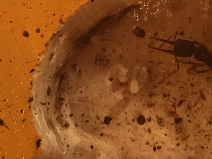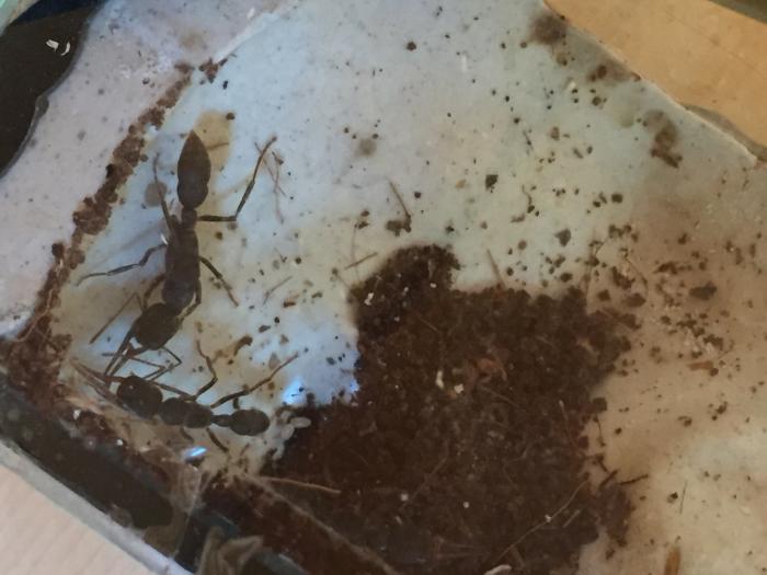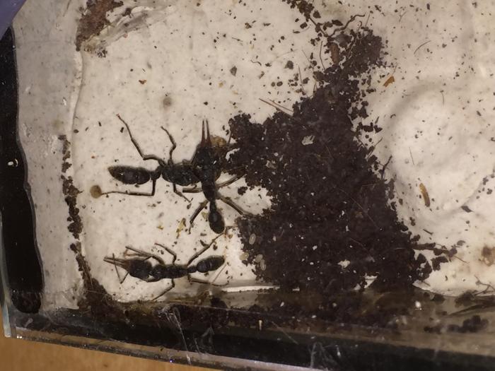 Так как я не собирался заканчивать блог про венаторов я делал заказ на них еще раз, но ни одна колония не пришла живой, это было настоящее потрясение для меня, но я не отчаивался и решил заказать еще одну колонию...к счастью на время доставки значительно потеплело и о чудо! Живые венаторы! И матка жива! И рабочих восемь штук, но рано я радовался, по утру мною было найдено 5 свежих трупиков...матка и два рабочих осталось в живых и это еня радовало. Матка во второй же день отложила яйцо, потом еще и ещё...итого сейчас 3 муравья, 4 яйца и надеюсь через месяц благополучно выведуться личинки