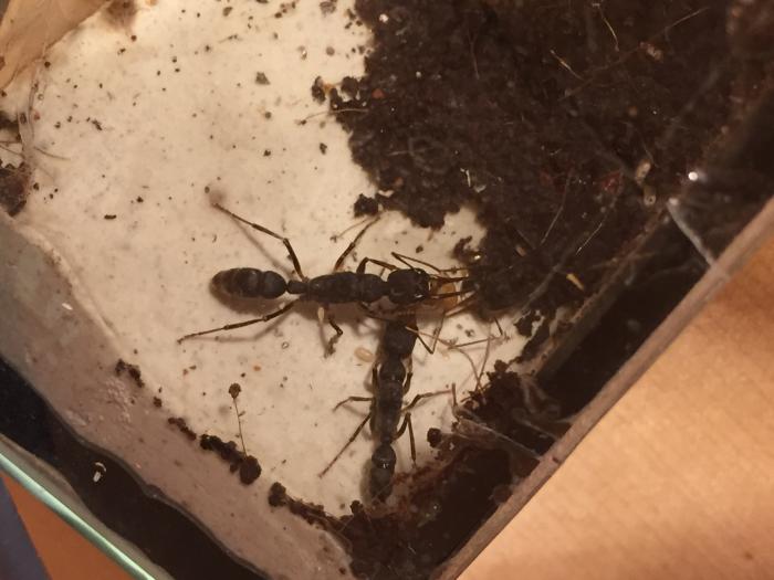 А тот клещ, что на муравьях - он просто место с пожрат ищет. Как раз, вроде субстрата как у Diacamma.