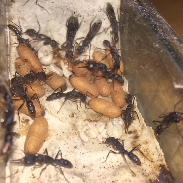 В колонии сейчас всё отлично. 14 коконов, 20+ личинок и некоторое количество яиц, чувствую нужен бокс побольше))