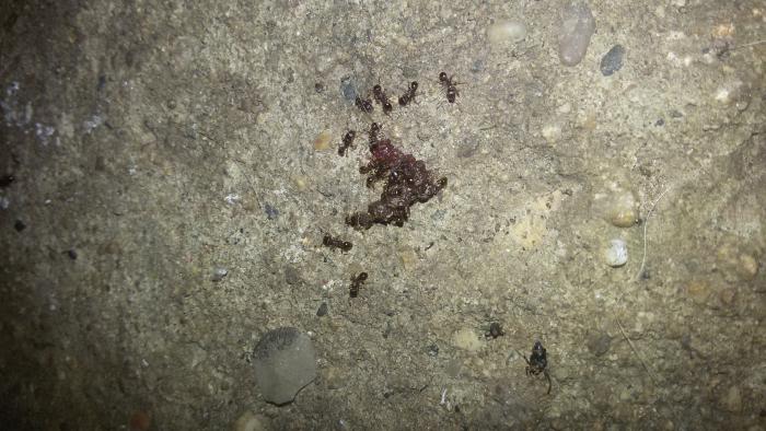 А что это за муравьи.Размер 1-2мм.На улице живут под порогом дома.На кусочек мяса вышло очень много.Что за вид?