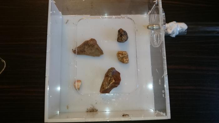 Здравствуйте, дорогие мирмикиперы! Давненько я не писал про своих кампов, а написать есть о чем. Я подключил кампам арену и положил на нее камешки. Кампов уже 18 вместе с маткой. Фото прилагается.