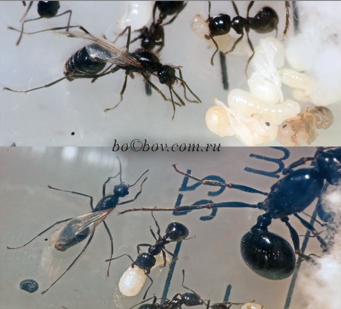 На фото самый распространенный вид . Хотелось бы определить по точнее. Если не трудно полное название. Фото 2006 г. Самку нашел под вечер уже с обломанными крыльями. К сожалению вопрос о создании колонии тогда не стоял. В этом году еще не было массового вылета , был один день крылатые седели на выходах в норках. Вот я и решил набрать. Набрал штук 20 самок и 5-6 самцов. Держу вместе. Несколько самок посадил в пробирки. У всех самок крылья пока целы. Интересно как происходит спаривание у муравьев? Если как у пчел в воздухе то наблюдать этот процесс практически не возможно., и все самки собранные на вылете с муравейника будут не оплодотворенные, правильно ?