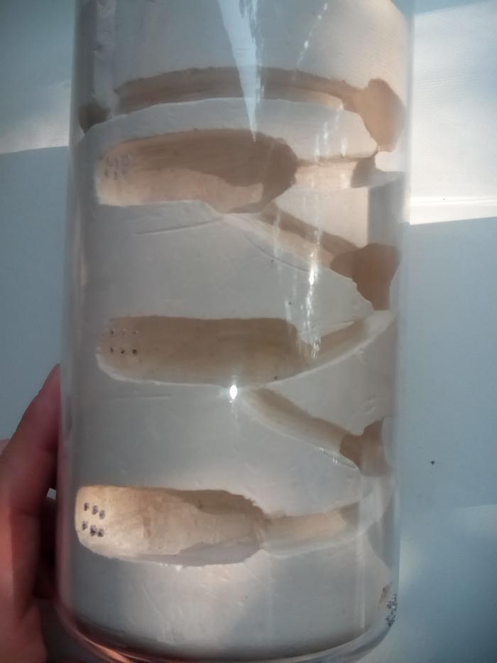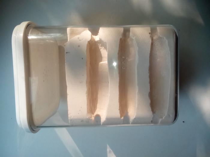 I. Самый первый формикарий - округлый. Изначально предполагался для мессоров, но из-за малых размеров самого контейнера гипс увлажняется равномерно, градиент влажности почти отсутствует. СИстема вентиляции выполнена в виде проплавленных отверстий диаметром со швейную иглу. Вентиляция находиться в камерах и по окружности верха-арены.