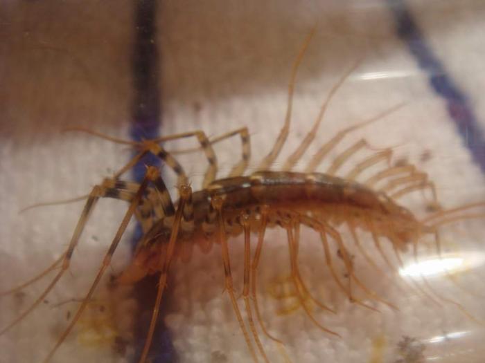 Доброго времени суток. На прошлой недели, приехал к родственникам на дачу и обнаружил на стене вот такую 30ти ножку )) Такое насекомое я вижу впервые. Размер её примерно 3-4см. Быстрая.