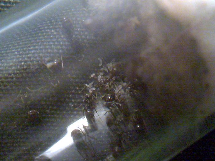 На сегодняшний день наблюдаю, что абсолютно все яйца развились в личинки. Выкладываю фотки неважного качества - настолько сложно поймать момент, когда муравьи "снимают" окружение, но сегодня вроде удалось ))