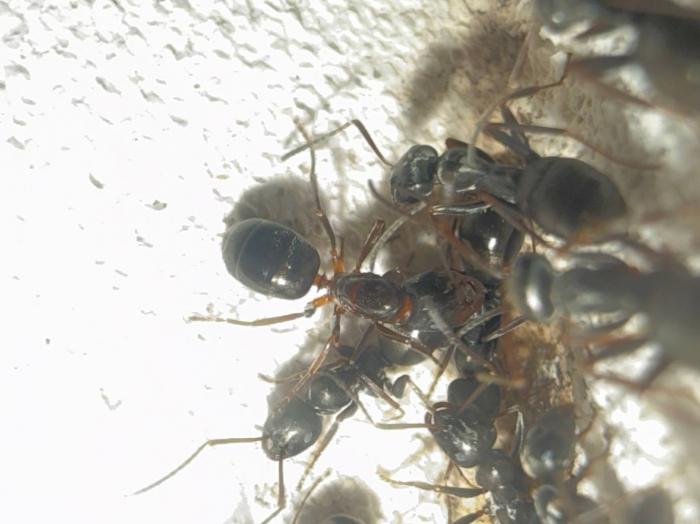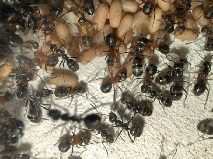 На самом деле да, удивляет, так как по плодовитости она не уступает пратенсису или трукорум, хотя у них только брюшки +- в размер самки копт. Но это создает так же некие проблемы, я уже несколько раз успел похоронить семью, потому что все никак не мог увидеть самку, которую очень сложно заметить на фоне сервиков. Возможно когда появиться больше родных рабочих, станет легче