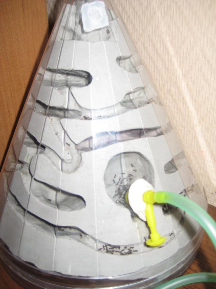 Формик, в котором сейчас колония перестал меня устраивать, много плесени. Гипс не чистый, а с какими-то добавками. Решил пересадить муравьев в формик "Муравейник", а этот переделать. Фотографии будут после удачного переселения, вчера подключил к старому формику новый, воздействую светом.