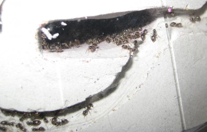 Колония растет не так быстро, как хотелось бы. Выявлены проблемы плесени (на фото под муравьями видно), плита неплотно прилегает к стеклу с обратной стороны, что уже привело к гибели более 10 муравьев. Скорее всего приму решение выселить муравьев из формикариума и самому залить новый гипс.