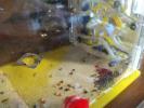 Подключил его к миниарене, дал немного сухого белкового корма, немного семян и пою сахарным сиропом.