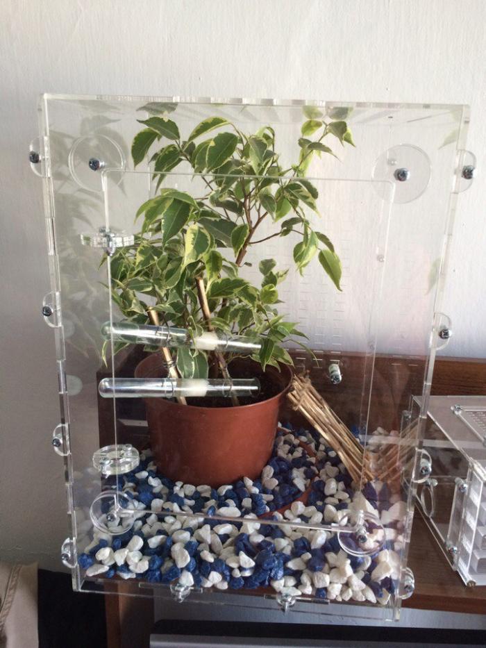 Здравствуйте! Хочу спросить про муравьёв Oecophylla smaragdina. Сильно они сложные в содержании? Какие особенности? Понравится ли им в конструкции как на фото, типо террариума, конечно же без щелей и с живым растением, фикусом скорее всего?