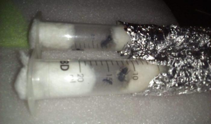 В течение нескольких дней колонии были переселены в новые инкубаторы из пробирок. В колонии с расплодом вскоре после этого умер рабочий, личинки до сих пор не претерпели заметных изменений. В другой колонии без изменений. Сироп обе колонии пили, белковый корм (мух) поначалу ели активно, но в последние пару недель игнорируют. В настоящее время обе колонии готовятся к зимовке: находятся в неотапливаемом помещении, в котором за последнюю неделю температура естественным путем снижалась. Сегодня будут помещены в холодильник до весны. Торопиться не буду, в условиях забайкалья зим длительностью 2 месяца не бывает)