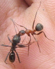 Сегодня нашел одно чудесное местечко, где много молодых муравейников руфибарбисов и предположительно мессоров. На фото вход в муравейник мессоров, битва мессора и руфибарбиса и 2 матки мессора, которых я словил. Вот насчет маток у меня есть сомнение: матки ли это вобще, а также мессоры это или нет??? Матки должны медленнее двигаться, чем солдаты и рабочие или нет? У лазиусов да, а у мессоров???
