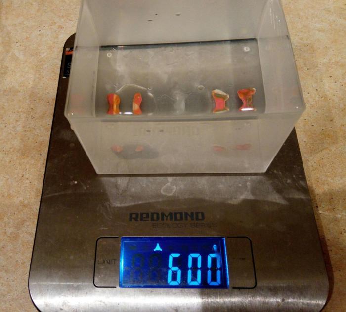 Итого, для заливки литровой формы, Вам нужно 714г воды и 714 грамм сухого гипса.