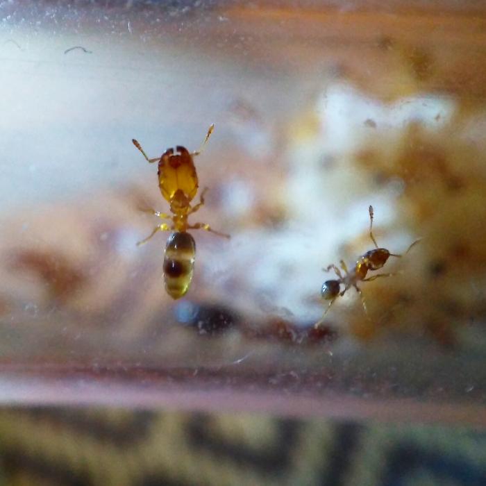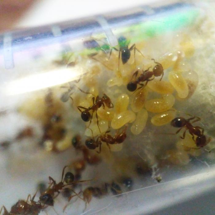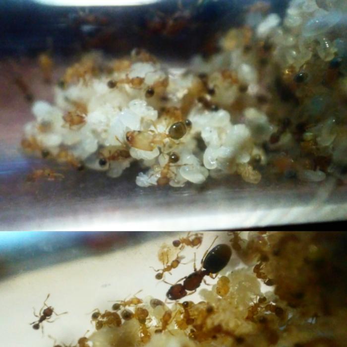 2) 4-5 молодых семей S geminata (2500) - мамашки, расплод, от 10 до ~100 рабочих (мамашки пойманы с разницей в месяц), расплода в несколько раз больше, чем рабочих, "солдат" ещё нет, появляются, когда семья разрастается до 500-1000