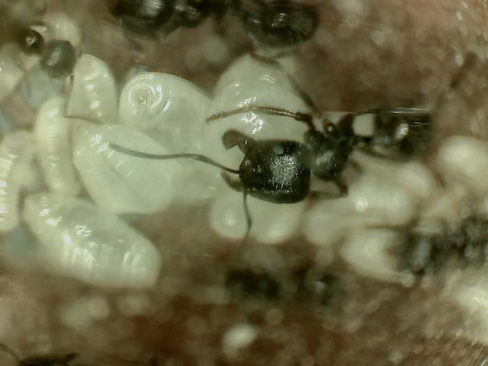 Сегодня достал семью мессоров, не смотрел, что там происходит уже месяц, и вот появились личинки самцов, тоже упитанные и раздутые:)