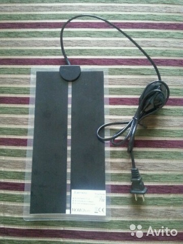 500р.15х28 см, 7ватт. есть регулятор температуры. розетка американская без заземления (с переходником под наши розетки)