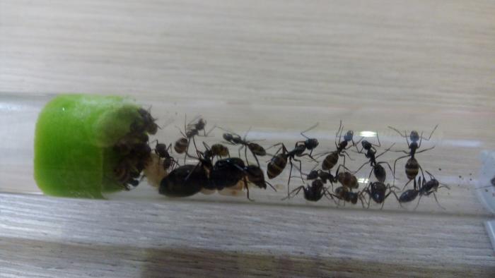 Живы, здоровы. Где-то через месяц после моей последней записи впали в диапаузу, причём сожрав крупных личинок, к сожалению. Поэтому и не писал ничего, т.к. не о чем было. Ну, ещё умерли двое рабочих около месяца назад, т.е. сейчас их 21. Жду когда личинки в рост пойдут. Или хотя бы когда матка начнёт яйца откладывать.