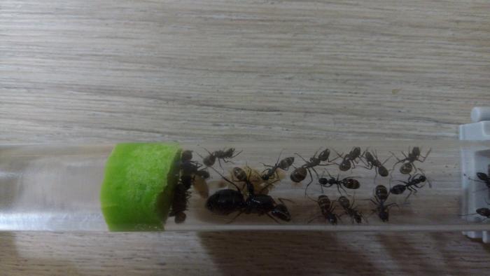 Ещё планирую их переселить в гипсовый формик из пищевого контейнера. Да, их мало, но возникла проблема: при трофолаксисе они заливают пол пробирки и расплод затоплен оказывается. Не каждую кормёжку, но регулярно. Поэтому думаю о переселении в гипс. Либо, может, сделаю инкубатор с гипсовым полом, но скорее всего нет.