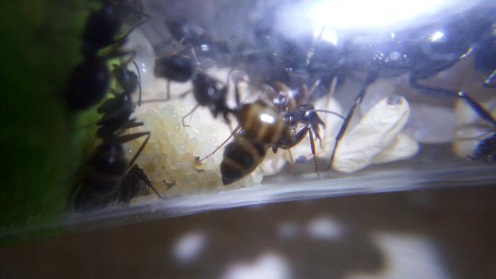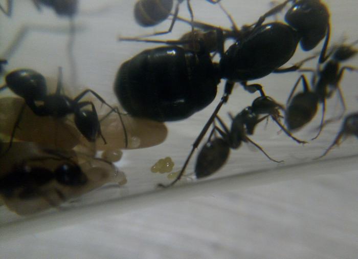 На данный момент в колонии 23 рабочих и распод: около 30-ти яиц и личинок (одна из которых скоро окуклится)