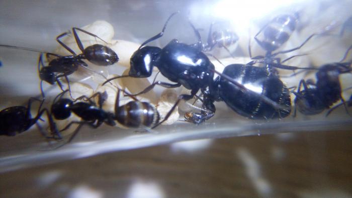 Вообще возник вопрос небольшой: а ларги ли это?.. Не то чтобы я сильно сомневаюсь в AntPlanet, у которых брал мурашей, но как-то уж слишком как на дрожжах они развиваются: прирост численности сейчас минимум 6 рабочих в неделю, хотя везде пишут, что развитие у них достаточно долгое для кампов. Правда без конкретики что конкретно имеется ввиду: скорость развития расплода или скорость роста самой колонии. Плюс заметил, что у полусолдата красноватые щёки, а пишут, что окрас у них полностью чёрный. И у Валерия в блоге не видел на фото подобных пятен. У них тоже морфы бывают?... Непонятно.