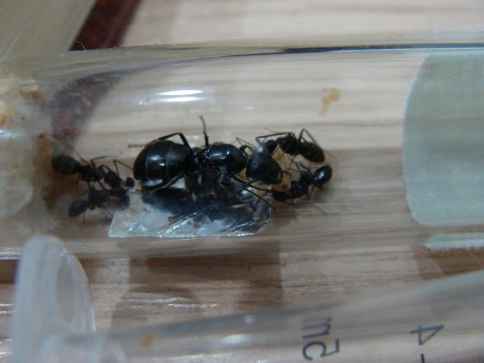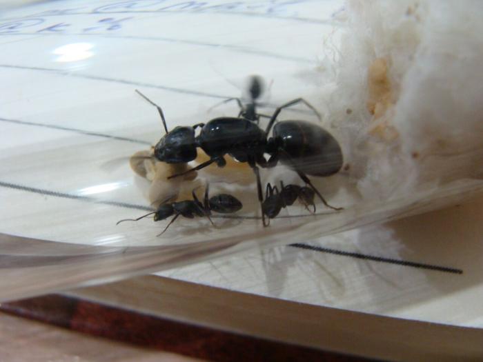 P.S. матки пойманы случайно в отпуске. рядом несколько больших колоний Camponotus, рабочие с явной рыжиной волосиков на брюшке, поэтому в систематике не сомневаюсь.
