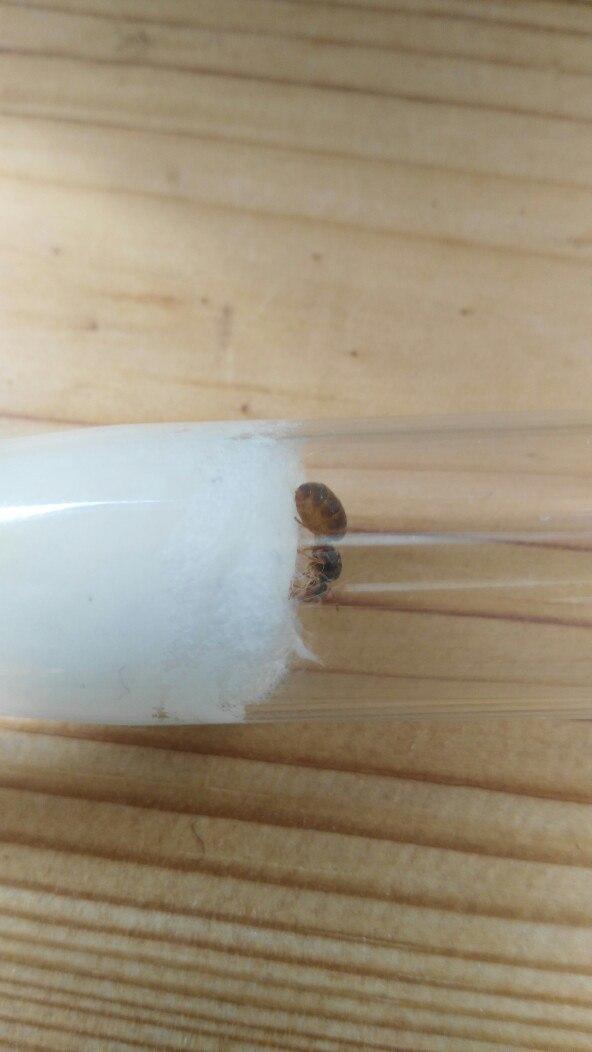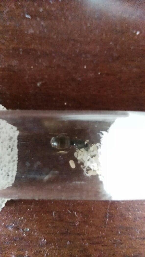 Поехал я значит на дачу, ну и нашёл там 2 матки: myrmica sp., lasius flavus. Но к сожалению матка флавусов на следующие утро умерла((. Решил скормить её тело мирмике рядом с домом. Матку мирмики уже заселил в пробирку, надеюсь что не умрёт. У моих нигеров всё хорошо. Думаю, что на неделе появятся первые рабочие). И вопросик. Я слышал, что к ней нужно