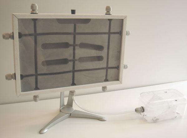 Сегодня доделал формикариум вертикального типа на подставке от ЖК-монитора для благоприобретённой колонии Formica rufa. Матка сидела несколько дней в контейнере с рабочими за нейлоновой сеткой для адаптации. При соединении компонентов колонии рабочие её не убили. Теперь они переезжают из арены в формикариум. В этом формикариуме с гипсовой плитой я использовал гермовводы для подсоединения прозрачных пластиковых трубок диаметром 6 мм. В неиспользуемые гермовводы я вставил круги из сеточек. Они работают как воздуховоды для вентиляции.