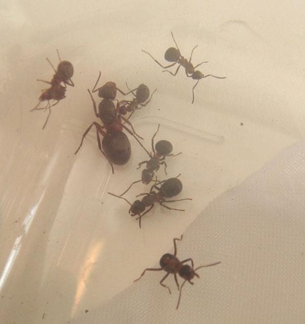 Дольше всех матка сопративлялась, из пробирки то вылезла, но засела в переходном шланге ( там где ватка тень давала), ее потом мураши за жвалы силком в пробирку затащили.