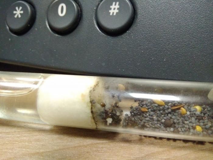 Добрый день! Купила в интернет магазине "стартовый" набор из акриловой фермы с муравьями "жнецами". Т.к. это подарок на новый год детям, то заселение в ферму хотела отложить до нового года. Смущает поведение матки, она малоактивна, но вроде жива. Еды в пробирку добавила и вода есть. Но ватка со стороны муравьев черновата и на мой взгляд есть плесень. Вопрос: мне нужно их срочно переселять или я зря беспокоюсь и можно подождать до праздника? Для меня это первый опыт, ранее муравьев наблюдали только в лесу, поэтому заранее прошу прощения за возможно глупый вопрос.
