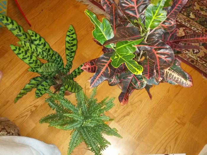 калатея руфибарба.нефролепис бостон.Кодиеум Варигатум Эксцеллент.