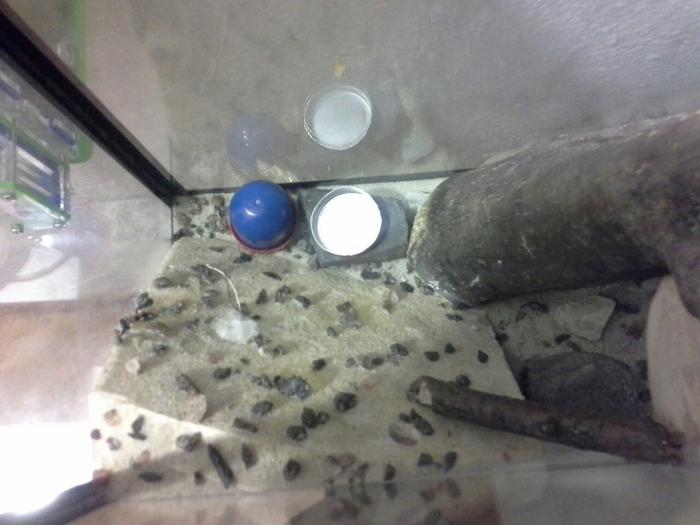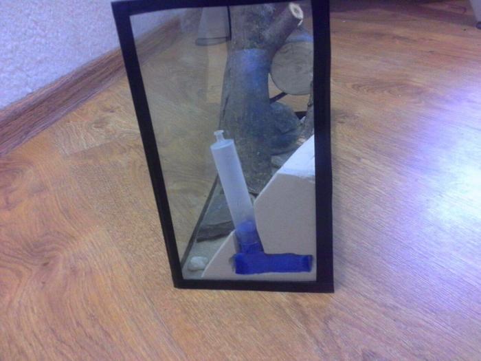 При сборки я забыл приклеить гипс ко дну аквариума и он немного отошёл .