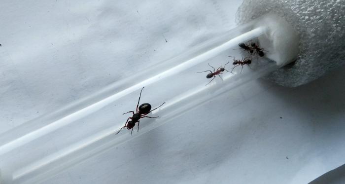 Хорошо, что у меня была своя колония serviformica rufibarbis )25-30 рабочих). На следующий день решил попробовать взять муравьев оттуда. Прочитал что надо выбирать более мелких, так как с ними меньше проблем.