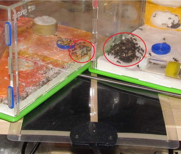 Допустимо, конечно, но с этим столпотворением на арене же тоже надо что то делать. Задумка с увеличением жилой площади формикария с помощью дополнительного модуля вопросов не вызывает, но почему бы не подключить ещё арену, удалённую от гнезда и используемую для кормления? - это было бы и интересно и симпатично и удобно.