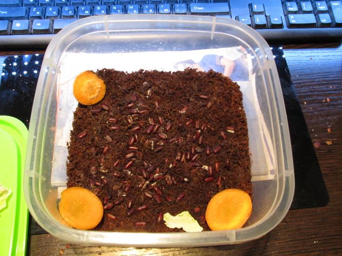 Прошла еще неделя, за которую я купил кокосовый субстрат, увлажнил его и высыпал в него все оотеки, слегка их вдавив в субстрат.