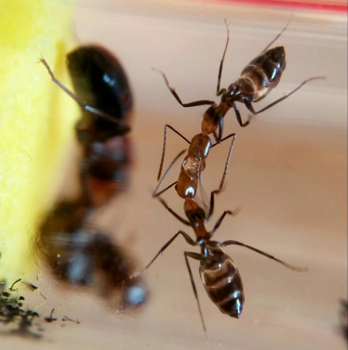 Ага, щаззз! Будут сидеть как селёдки в бочке, а кому не хватило места или недостало желания так ютиться - те уйдут в новое жилище или на арену :) Но старый домик - основное гнездо, его они не бросят никогда. Даже когда он высохнет - ну что ж, будут увлажнять сами. В общем, пока не отнимите - старый инкубатор будет предпочитаем этой семьёй. Оно, может, и к лучшему. Недавно узнал о физиологических причинах необходимости расплодных гнёзд у кампов, теперь думаю - как бы это реализовать. Если самка со свитой останется в инкубаторе, а рабочие с расплодом уйдут в новый формик - это здорово и желательно.