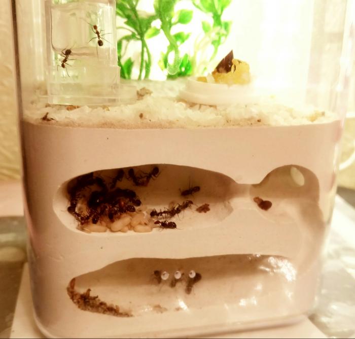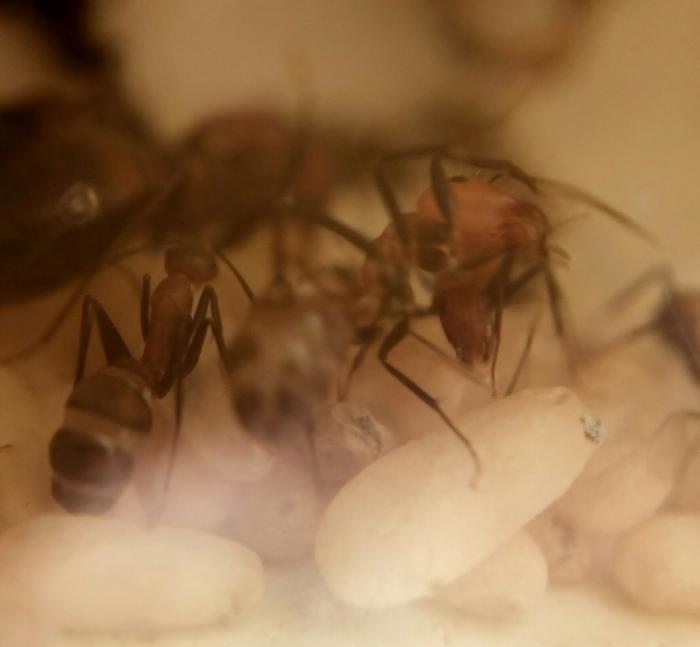 У ников дела так: 26 мурашек, два солдата, полно расплода и коконов.