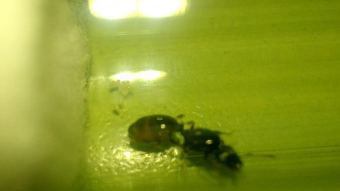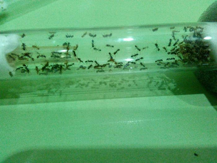 Вчера ко мне пришла партия мурашей для продажи, с ними были тетры. Сказать, что они были в плохом состояние-ничего не сказать, продавец даже не взял денег. Тут хочу сказать, что тетры по истине живуче. В пробирке в буквальном смысле плескалась вода. Вся семья теснилась на маленьком островке ваты. Я экстренно вытащил вату пинцетом и положил на арену. О чудо 60-80% ожило, матка была среди них. На мой взгляд она даже меньше предыдущей.