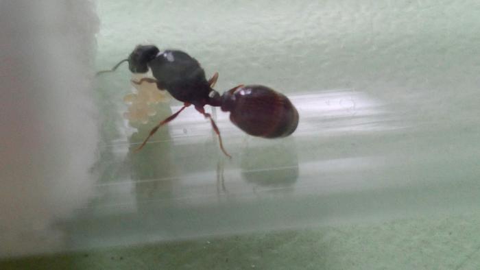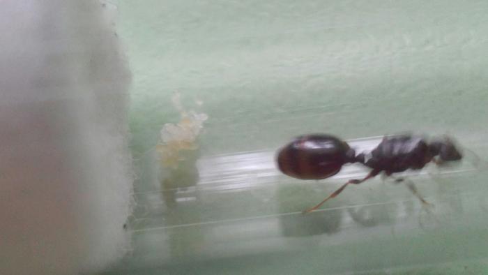 Сегодня вывелся первый крохотный мураш с голову матки.